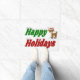 Doormat con felices vacaciones en 3D texto verde y rojo y un reno. Disponible en varios tamaños.