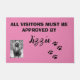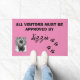 Doormat divertido - Todos los visitantes deben ser aprobados por [el nombre del perro/gato]. O cualquier otro mascota que pueda tener. La foto y el texto son fáciles de personalizar para que puedas añadir el tuyo propio.