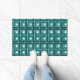 Este doormat tiene un diseño geométrico hecho de Ls en tonos verde azulados colocados en diferentes direcciones repitiendo a lo largo del diseño.