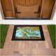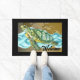 Hermosa tortuga marina en la alfombra de la puerta del océano es una manera colorida y divertida de saludar a los huéspedes a su casa de playa.