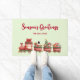 La alfombra de la puerta de los saludos de temporada con una imagen adorable y adorable hecha con acuarelas. Santa conduciendo un tren lleno de juguetes para todos los niños del mundo.