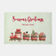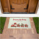 La alfombra de la puerta de los saludos de temporada con una imagen adorable y adorable hecha con acuarelas. Santa conduciendo un tren lleno de juguetes para todos los niños del mundo.