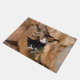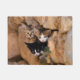 Tres gatitos de bebés saliendo de un agujero rocoso en la pared con ojos entrometidos. Tomé la foto de estos lindos gatos en una isla griega, esta alfombra de puerta es una idea de regalo para los amantes de los gatos. Foto de Katho Menden. http://www.zazzle.com/kathom_photo