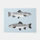 Este doormat del tema de la pesca en agua dulce incluye 2 ilustraciones blancos y negros de los pescados del estilo del vintage. Represente en este doormat son dos de los pescados más icónicos del deporte de Norteamérica; trucha marrón y trucha arco iris. Introducido de Europa, la trucha marrón también se conoce como trucha o brownie alemana. La trucha arco iris es nativa a las corrientes claras frescas de las montañas rocosas. Este doormat es conveniente para los hogares de vacaciones de verano, pescando cabinas, guaridas, o uso diario.