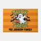 Diversión Halloween Trick o Treat doormat, personalizado con el nombre, cambiar el texto cuando pides