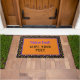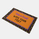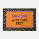 Este doormat al aire libre de la temporada de Halloween presenta un fondo de caramelo de "truco o regalo" con un naranja y un overlay morado para el texto "Trick or Treat Wipe Your Feet" Este divertido felpudo se coordinará con otras decoraciones de Halloween negro y naranja.