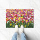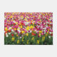 Un campo por completo de tulipanes holandeses. En la parte inferior de la primavera de la imagen los troncos verdes de la primera fila de tulipanes, con las flores en el top. De allí en, a lejos, el fondo borroso, apenas tulipán de las flores… solamente florece en muchos colores. De amarillo, al rojo, a la púrpura, al rosa. Vista típica en los Países Bajos. Encima de los troncos verdes, la palabra Holanda.