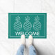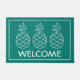 Este bonito felpudo presenta tres piñas clásicas de color blanco sobre un fondo de turquesa sólido. Personaliza tu elección de mensaje especial.