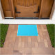 Doormat de bonito con patrón de chevron de diamante en tonos azules, incluyendo aqua y turquesa que se asemejan a un tejido o manta.