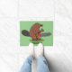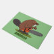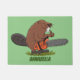 Este feliz castor está listo para construir su lodge con una sierra. ¡Dibujado en un divertido estilo de ilustracion personalizado!