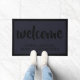 Moda, moderno y simple doormat con la bienvenida del texto y sus nombres en caligrafía con escritura con letras negras y letra de estilo tipográfico en un fondo azul marino. Sólo tienes que añadir el nombre de tu familia. Excelente regalo para una nueva casa, nuevos propietarios o recién casados. Diseñado exclusivamente para usted por Happy Dolphin Studio. Si necesita ayuda o productos coincidentes, póngase en contacto con nosotros en happydolphinstudio@outlook.com.