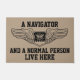 Una forma descarada de recibir invitados a su casa, este doormat beige vestido con traje de avión desértico presenta un texto gráfico y personalizado con alas negras del navegador que dice: "un navegador y una persona normal viven aquí". Utiliza el botón "Personalizar" para más opciones de personalización!