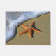 Sorprendente fotografía de playa, una estrella de mar naranja en el borde del agua a punto de ser cubierta por una suave ola.
