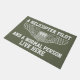 Una manera fresca a las huéspedes agradables a su hogar, este doormat del verde del juego del vuelo ofrece piloto un gráfico de las alas del piloto del blanco y un texto del personalizado que lea, de un helicóptero de A y una persona normal viva aquí. ¡Utilice el "personalizar él" botón para aún más opciones de la personalización!