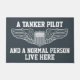 Una manera fresca a las huéspedes agradables a su hogar, este doormat del gris azul ofrece piloto un gráfico de las alas del piloto del blanco y un texto del personalizado que lea, de un petrolero de A y una persona normal viva aquí. ¡Utilice el botón azul del "personalizar" para aún más opciones de la personalización!