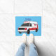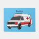 ¡Esta feliz ambulancia roja está en camino de ayudar! Dibujado en un divertido estilo personalizado.