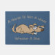 Un doormat para los amantes del perro, con un perro del dibujo animado masticando en un hueso, y el texto diciendo "una casa no es un hogar sin un perro".