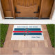 Esta alfombra de bienvenida tiene un toque rojo, blanco y azul con un toque náutico. El diseño, situado sobre un fondo blanco, comienza con barras azules y rojas. En el centro hay un ancla con cuerda. El texto dice: "BIENVENIDOS A NUESTRO HOGAR - Familia Johnson". El texto se puede personalizar.