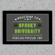 Abraza el espíritu de Halloween con esta alfombrilla de bienvenida personalizada que presenta un texto de estilo colegial de moda que dice "Universidad Espeluznante" y "Hocus Pocus 101", además de dos arañas viudas negras espeluznantes. Este diseño agregará un toque personal a tu decoración de Halloween. Modifica las tres áreas de texto para crear una alfombrilla única para saludar a amigos, familiares y niños que piden dulces con estilo. Ya sea que estés organizando una fiesta en una casa embrujada o simplemente quieras agregar un toque festivo a tu entrada, esta alfombrilla personalizable es la opción perfecta para mostrar tu espíritu de Halloween.