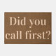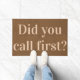 Este doormat al aire libre divertido ofrece el texto que dice que "usted llamó primero?".
