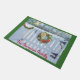 Bienvenidos amigos y familia a su casa con esta bonita alfombra de bienvenida que representa una escena de nieve en invierno con una valla blanca de piquetes y hermosos Navidades colgados en ella. Está bordeado de verde Navidad y personalizas con tu nombre o puedes cambiarlo a "Bienvenido a nuestro hogar".
