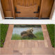 Vegetación y trillizos de oso marrón costero.En la hierba larga a lo largo de un río.Esta alfombrilla de auto tiene un marco de textura de parqué.El texto y el color del texto pueden cambiar a cualquier color que desee con la etiqueta personalizado.