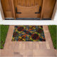Felpudo Verde Amarillo Rojo sobre papel rojo oscuro, con f