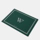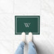 Doormat con un monograma de estilo mínimo enmarcado en el centro. Debajo de esto hacia abajo está la fecha establecida de tu familia. El fondo contiene un verde pino profundo. El marco de borde exterior es gris para complementar el fondo junto con el monograma gris.