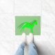 Este impresionante felpudo presenta una imagen gráfica de un lindo unicornio irlandés. El unicornio es verde y luminoso, con una forma y una cola de dos tonos más de verde. Tiene un cuerno de oro brillante y cascos dorados. El unicornio tiene un ojo de anillo dorado y una sonrisa amistosa. Hay cuatro pequeñas rocas de champú en el lado del unicornio.
