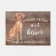Es gracioso tener cuidado con el besador húmedo" estera de puerta de perro húngaro Vizsla puesta en un rústico fondo falso. Visite nuestra tienda para ver una gran variedad de panes de perro