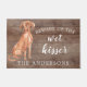 Es gracioso tener cuidado con el besador húmedo" estera de puerta de perro húngaro Vizsla puesta en un rústico fondo falso. Visite nuestra tienda para ver una gran variedad de panes de perro