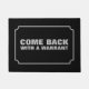 Un portero negro que dice "Regresa con una orden" en letras mayúsculas. Un felpudo gracioso para la gente con un tipo especial de humor y amor por la policía.