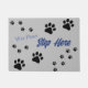Bienvenidos los amantes de los perros con este felpudo, con sus huellas de pata y el texto que puedes personalizar, mostrando los Wet Paws Step Here. Un fondo gris suave y neutro con texto azul va bien con muchos estilos diferentes de amante de los perros, o cambia los colores para adaptarse a tu hogar.