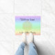 An elegant and chic welcome mat. Golden flower of life with the pink inscription love and a pastel background.