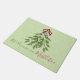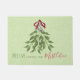 Merry Mistletoe con bayas blancas atadas en una cinta roja enclavada en la puerta, esperando que los que están debajo estén. Un diseño agradable y sencillo que representa un elemento Navidad sencillo y clásico. Un diseño maravilloso para cualquier ocasión de vacaciones.