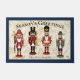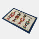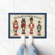 Doormat personalizado de los cazadores de nueces - Saludos de las estaciones Bienvenido a los huéspedes con estilo festivo con este doormat de Nutcracker personalizado. Cuatro encantadores soldados de Nutcracker se encuentran orgullosamente en el centro de este diseño, con un fondo beige profundo con hojas y bayas huecas. La parte superior de la alfombra incluye las palabras "Season's Greetings" (Saludos de temporada), mientras que la parte inferior ofrece un espacio para la personalización, lo que la convierte en una adición única a la decoración de tus vacaciones. Perfecto para las entradas, este doormat añade un toque de magia y calidez a los Navidades tradicionales.