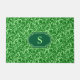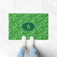 Doormat en un patrón vintage de damasco William Morris de flores y hojas de cardo, en verde esmeralda oscuro, sobre un fondo verde de menta clara, realzado digitalmente y coloreado, con monograma