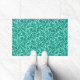 Doormat en un patrón vintage de damasco William Morris de flores y hojas de cardo, en azul turquesa/pavo real, sobre un fondo acuático claro, realzado digitalmente y de color