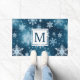 Entre en una tierra de maravillas de invierno con nuestro Doormat de nevadas. Con intrincados copos de nieve en cascada sobre un sereno fondo azul y blanco, este felpudo marca el tono perfecto para la temporada. Los huéspedes reciben a sus huéspedes con un toque de encanto y elegancia al entrar en su casa, abrazando con cada paso la belleza del invierno.