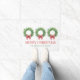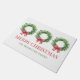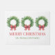 Este doormat de vacaciones personalizado para Navidades cuenta con coronas verdes con arcos de gingham rojos. Personalice con su elección de texto y nombre especial.