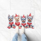 Adorable and stylish Yorkshire Terriers are ready for the holidays! This charming design features them in festive Santa outfits, perfect for Yorkie lovers and miniature dog enthusiasts.