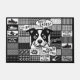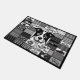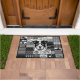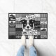 Este diseño combina elegancia humorística con un toque de encanto pop. El perro de aspecto feroz en el centro es un verdadero capricho y transmite un mensaje claro con las divertidas burbujas de habla "¿Zapatos sucios?" y "¿Cómo te atreves?". Los elementos gráficos dispuestos simétricamente al estilo de la rejilla de bento, como zapatos, patrones dinámicos y un espacio para texto personalizable como "Bienvenido al nombre de la familia", hacen de este diseño una obra de arte única. La estética en blanco y negro crea un aspecto atemporal y moderno que realzará cualquier área de entrada. Perfecto para familias, amantes de los animales o fanáticos del diseño que quieran combinar humor y estilo.