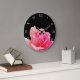 Impresionante fotografía rosa rosa rosa rosa en un color de fondo personalizado. Reloj interior elegante y elegante en la pared.