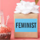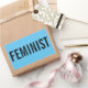 Feminista, texto negro en negrita sobre pegatinas
