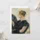 Femme À L'éventail (1876) de Berthe Morisot es una elegante representación de una mujer sosteniendo un ventilador, capturando la gracia y el aplomo del sujeto con un toque impresionista característico. La mujer, vestida con un exquisito vestido negro, es vista en perfil, sosteniendo delicadamente un ventilador abierto en una mano. Las brochas suaves y fluidas y el uso de la luz y la sombra reflejan la experiencia de Morisot en transmitir el estado de ánimo y la atmósfera. Los ricos colores y el juego de la luz sobre la cara y la vestimenta de la mujer crean una sofisticada e íntima representación de la forma femenina en un momento de tranquila contemplación. Utilice las herramientas de diseño para agregar texto personalizado o personalizar la imagen.