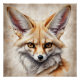 Un zorro de Fennec con acuarela detallada con ojos expresivos se representa sobre un fondo suave y borroso. Los colores naturales realzan el aspecto realista.
