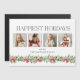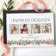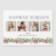 Diseño botánico de vacaciones moderno y limpio con borde de arcos y mistletos de coqueta rosa de color agua, plantilla de cuatro fotos y elegante saludo gráfico de texto de "Festividades más felices" en una fuente personalizado (personalizar el color en el editor de texto).