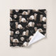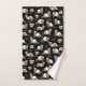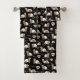 Ferretes dibujados a mano, conjunto de toallas de baño patrón de xoxo y corazones , fondo negro.
