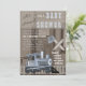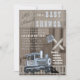 Diseño rústico y único con temática de tren, con la imagen de una vintage cabaña de ferrocarril como fondo junto con la locomotora original, las vías del ferrocarril y el cartón de travesía del ferrocarril, con el gorro de los conductores colgando del cartel. Ilustracion original, fotografía y diseño de Holiday Hearts Designs (todos los derechos reservados). Si necesita ayuda para personalizar este diseño para su ocasión, por favor envíenos un correo electrónico a info@holidayheartsdesigns.com.