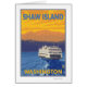 Ferry and Mountains - Shaw Island, Washington - Vintage Travel Poster fue creado en 2007. Esta imagen muestra escenas de la isla Shaw, WA.